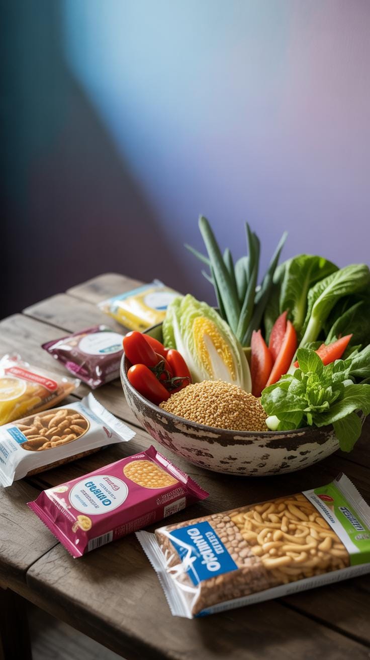 • Highly processed snacks—chips, sugary bars, and frozen meals
