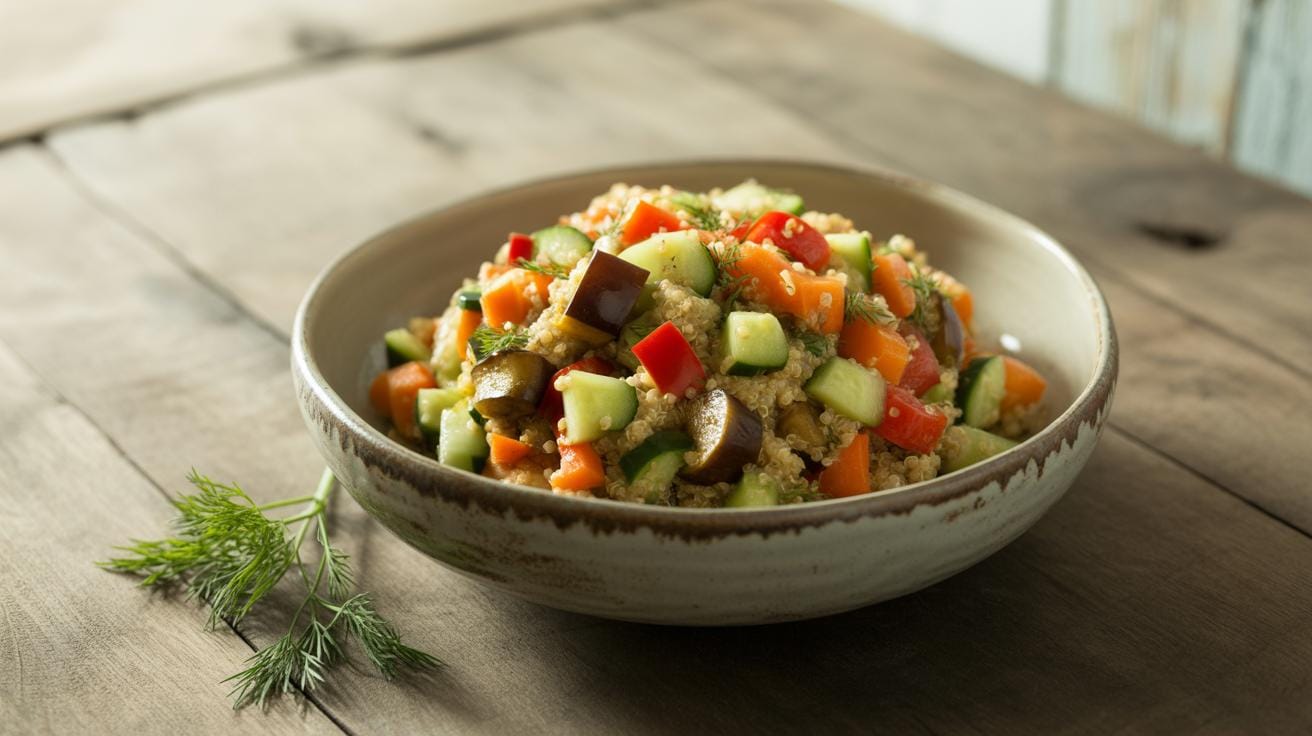 • Roasted vegetable quinoa bowl: Roast seasonal vegetables like zucchini, sweet potatoes, and broccoli. Mix with cooked quinoa and a drizzle of olive oil.