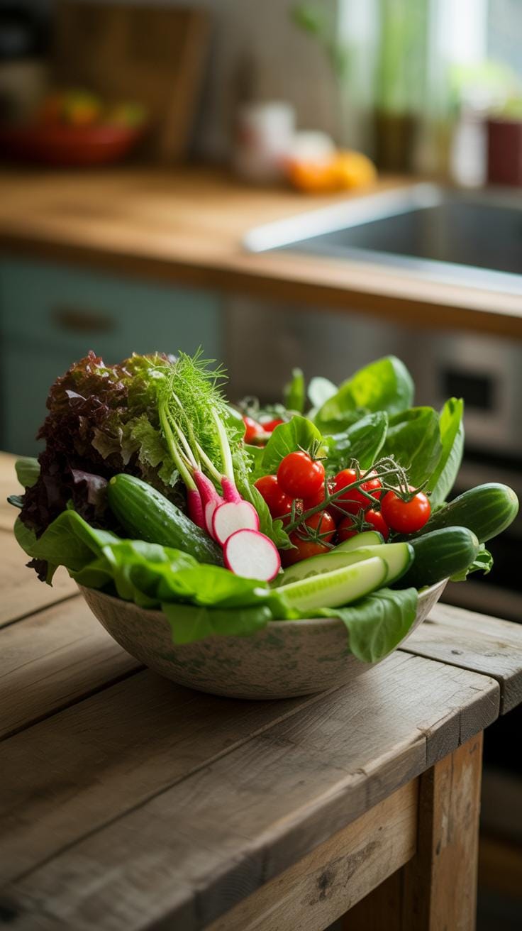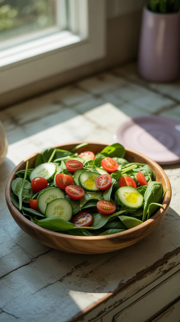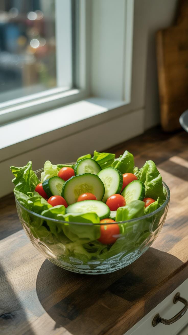 You can whip up a garden salad in no time, using whatever fresh veggies you have around. The basic idea: toss together some roughly chopped lettuce or mixed greens, sliced cucumbers, tomatoes, and maybe a bit of red onion if you’re feeling fancy. I often grab pre-washed greens to speed things even further.