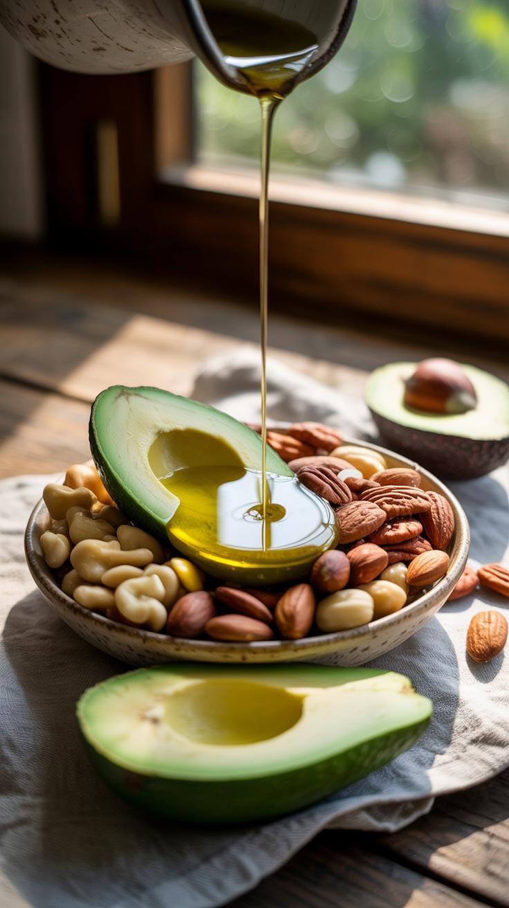 - Healthy fats from nuts, seeds, and olive oil