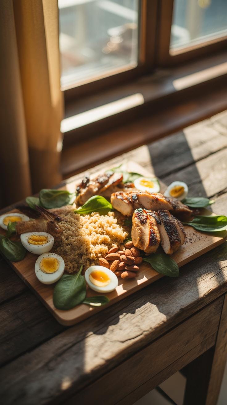 - Dinner: Protein-centered, with moderate carbs and healthy fats for overnight muscle repair.