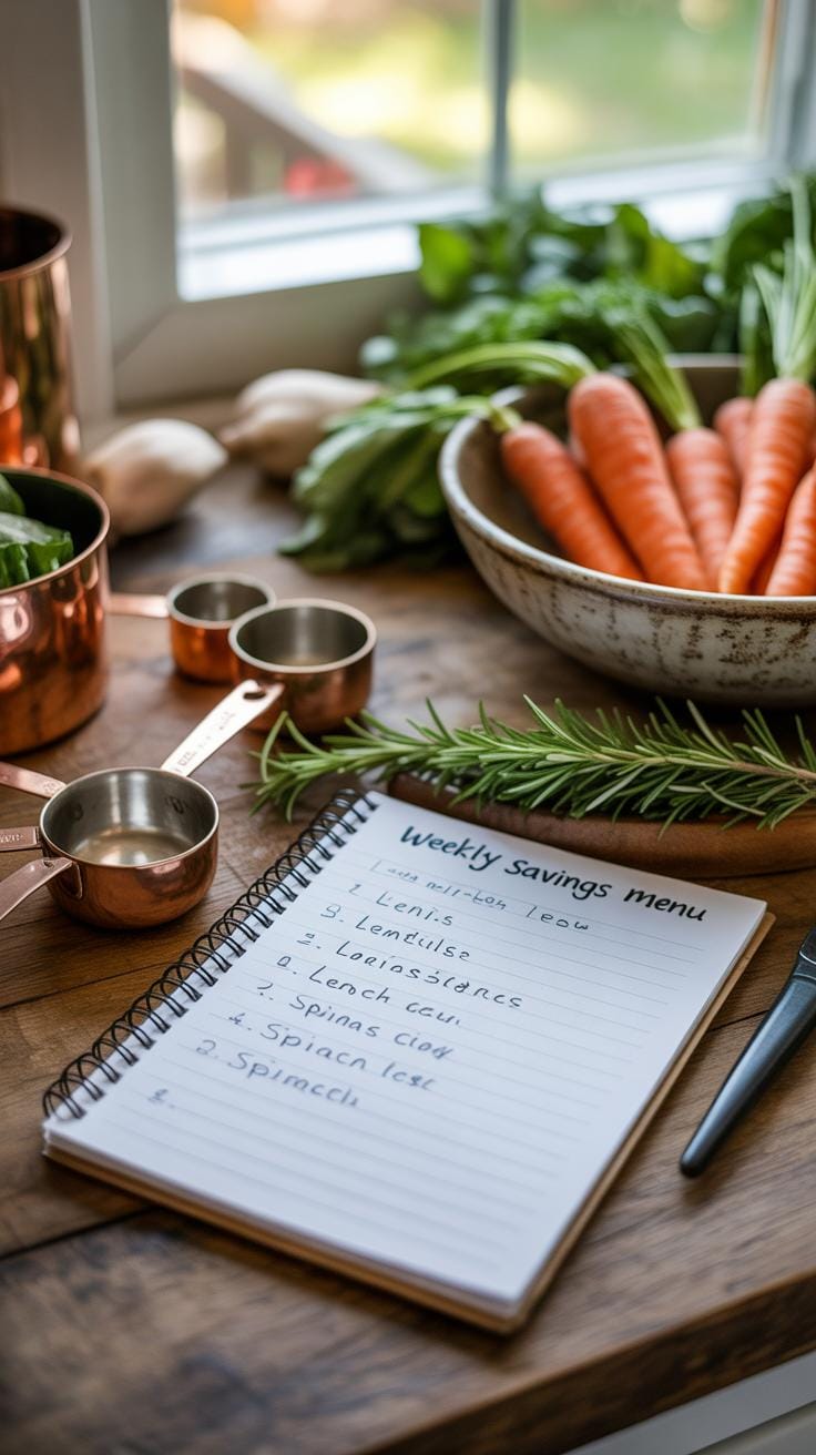 When designing your weekly menu, start with a rough framework but leave space for small swaps. Picking budget-friendly proteins like beans, eggs, or canned fish helps keep costs down.
