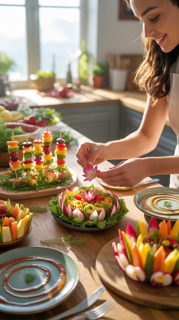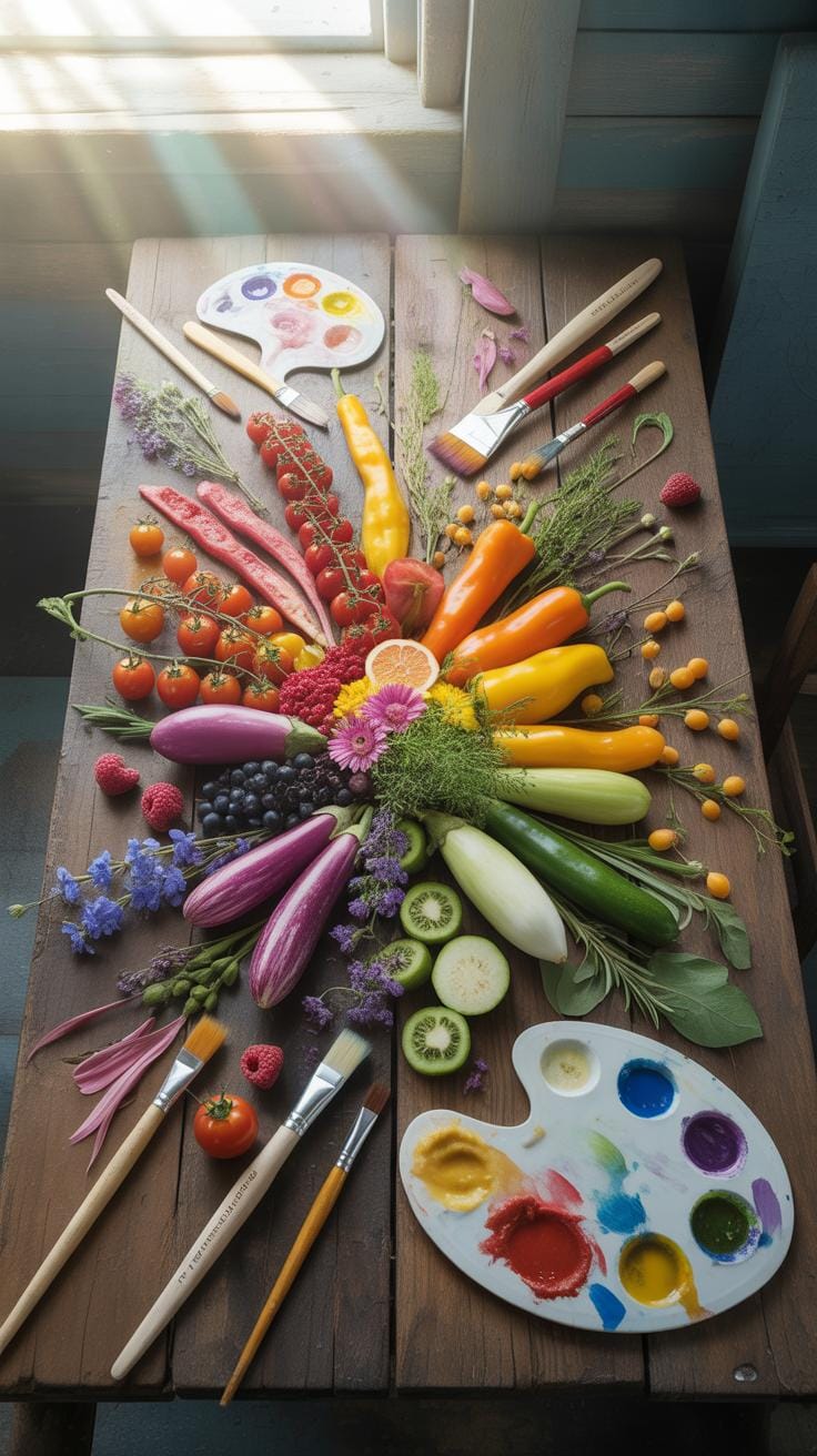Colorful fruits and veggies bring life to any food art project. Think about layering strawberry slices with kiwi or blueberries to create patterns or faces. It doesn’t have to be perfect—sometimes the charm is in the messiness.