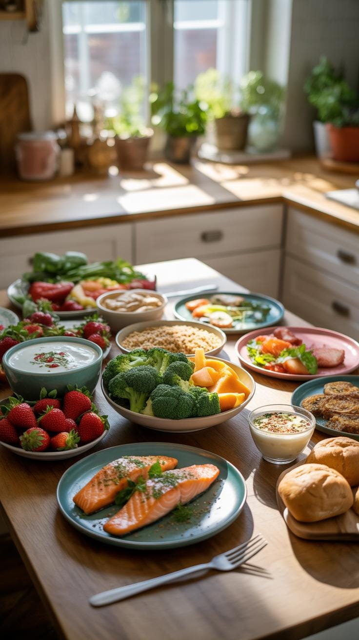 Lunch and dinner can follow similar principles. Think about simple meals that prioritize balance without being boring. Grilled salmon with a side of roasted sweet potatoes and steamed broccoli fits the bill for protein, fiber, and vitamins. For a plant-based option, lentil stew packed with carrots, tomatoes, and kale offers plenty of nutrients and warmth on cooler days.