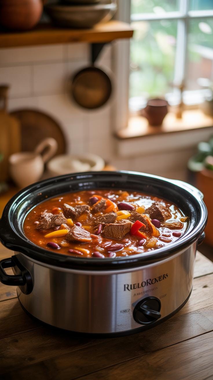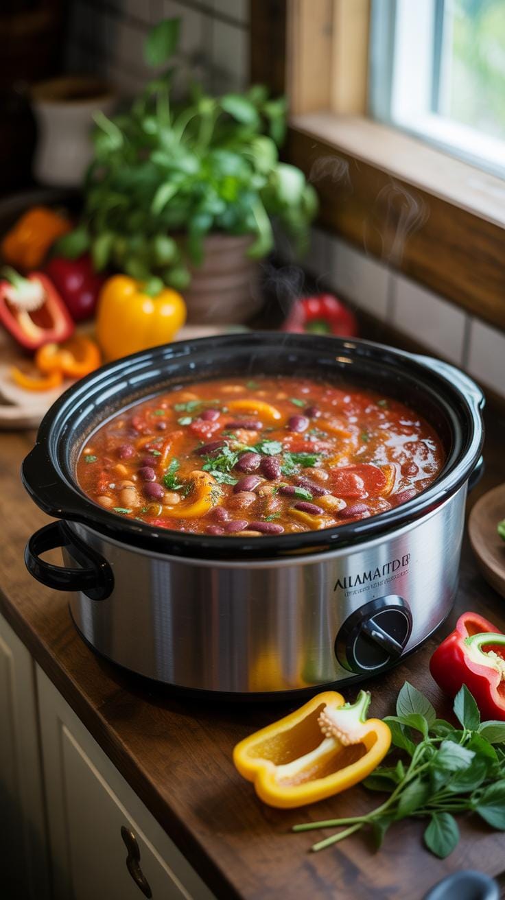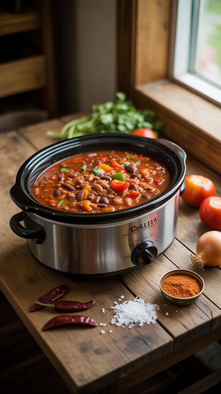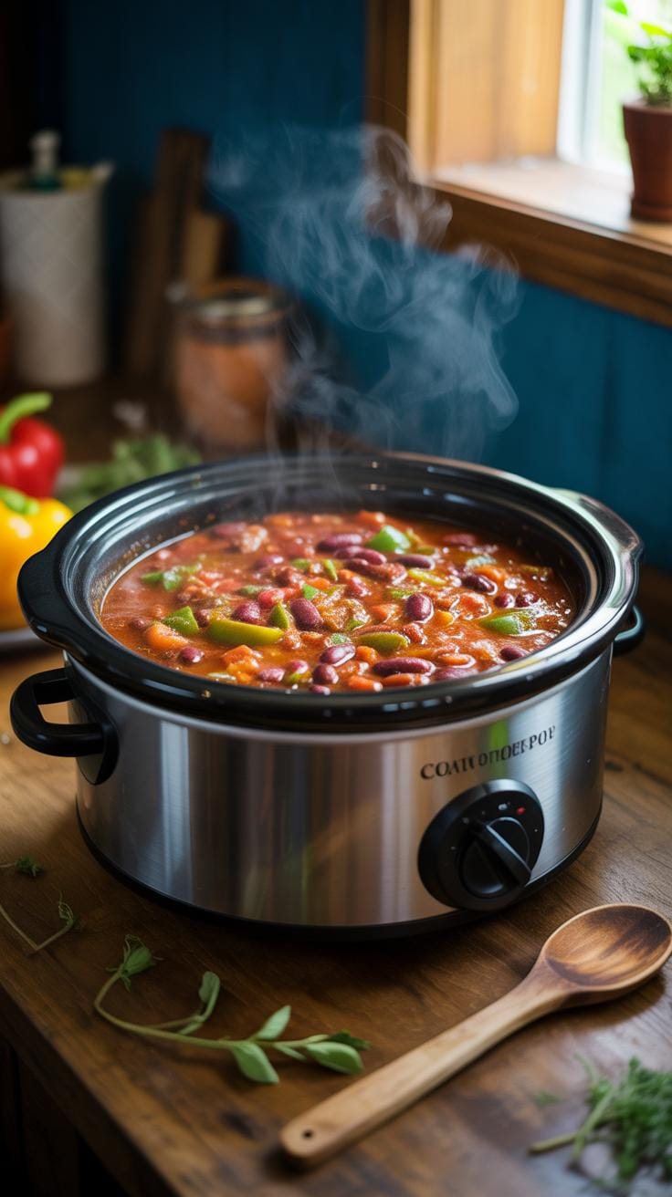 • Slow cooker chili often delivers complex flavors but can lose some vitamins over extended cooking.