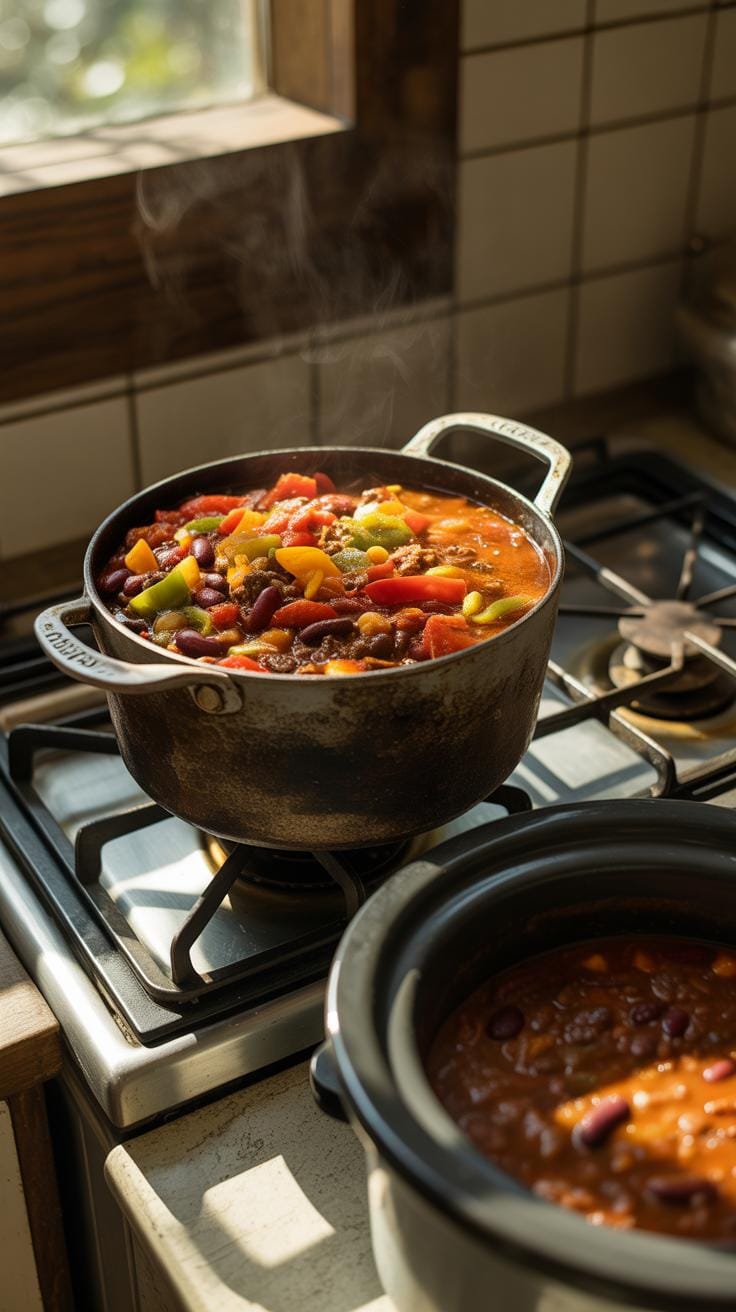 On the other hand, stove-top chili cooks faster, often preserving more heat-sensitive nutrients because the exposure to heat is shorter. Still, you might need to keep an eye on the temperature and stirring so nothing sticks or burns, which can add some hassle.