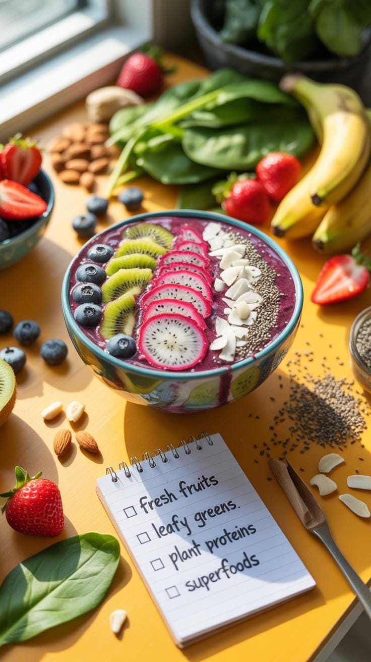 First, plan your ingredients. Pick fruits and vegetables you enjoy eating because it makes sticking to the diet easier. Then, consider adding protein sources like Greek yogurt or protein powder to keep you full longer.